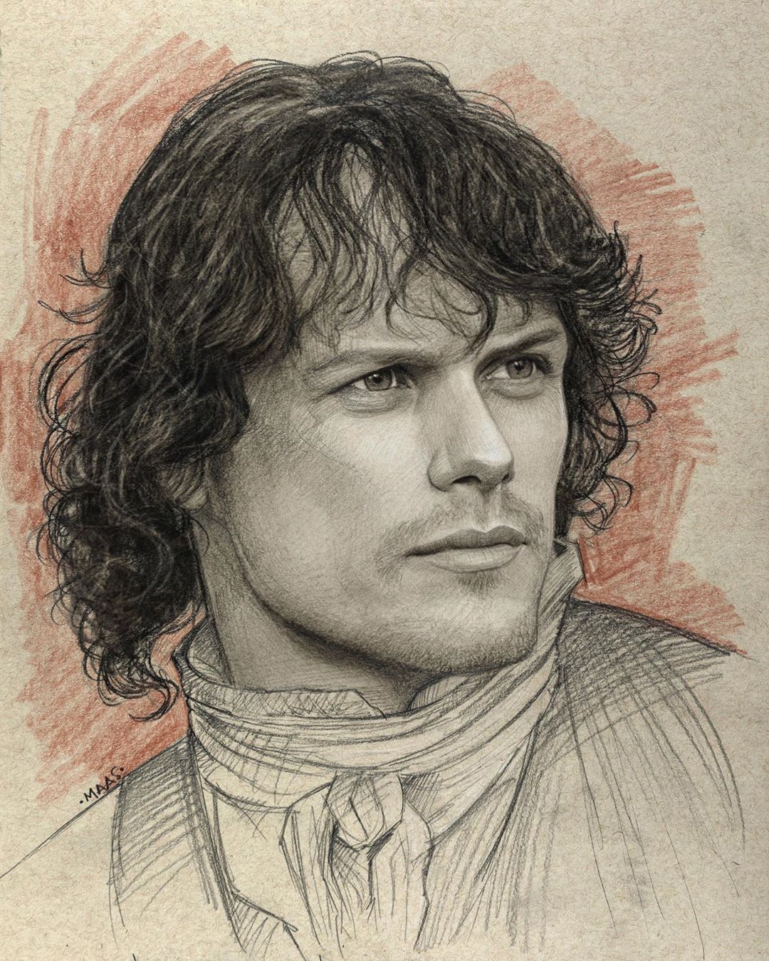 Find beautiful Sam Heughan drawing images, sketch, pencil and colorful drawing photos drawn by professional artists.